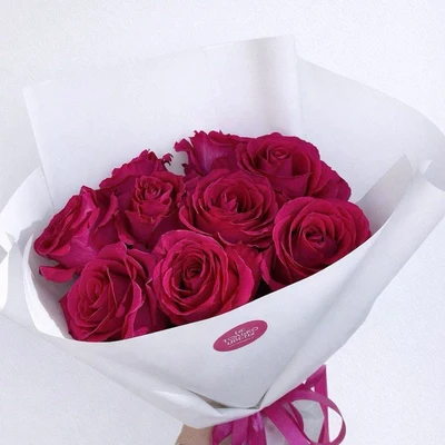 Моно-букет из 9 роз сорта “Pink Floyd” в стильной упаковке. Размер: Ширина: 30 см. Высота: 50 см.