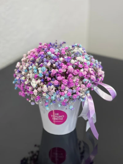 Композиция из яркой разноцветной гипсофилы. Размер: Ширина: 17 см. Высота: 17 см.